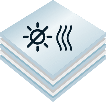 • Zonwering – De coating vermindert de directe inval van zonnestralen en -warmte, waardoor 64% van de zonnewarmte wordt gereflecteerd. Dit helpt